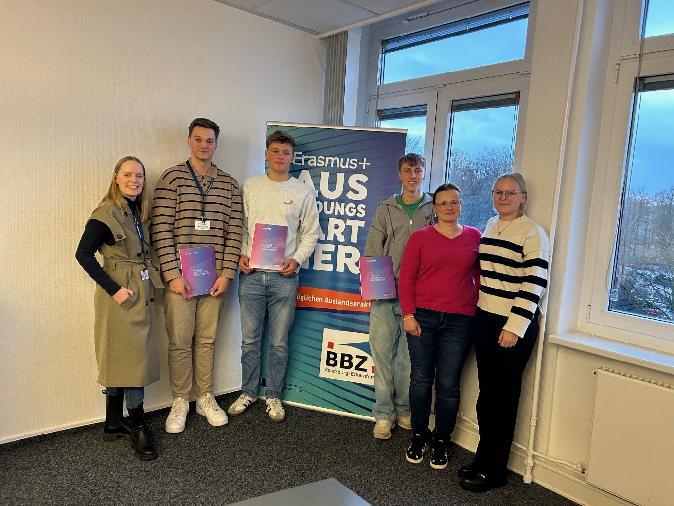 Am 24. November 2025 präsentierten die Teilnehmenden ihre Erfahrungsberichte vor Ausbildern, Lehrkräften, Erasmus+-Koordinatoren und der Schulleitung des BBZ Rendsburg-Eckernförde. In den Räumlichkeiten der Stadtwerke Rendsburg kamen alle Beteiligten zu einem regen und bereichernden Austausch zusammen – ein würdiger Abschluss einer ereignisreichen und erfolgreichen Auslandsphase.