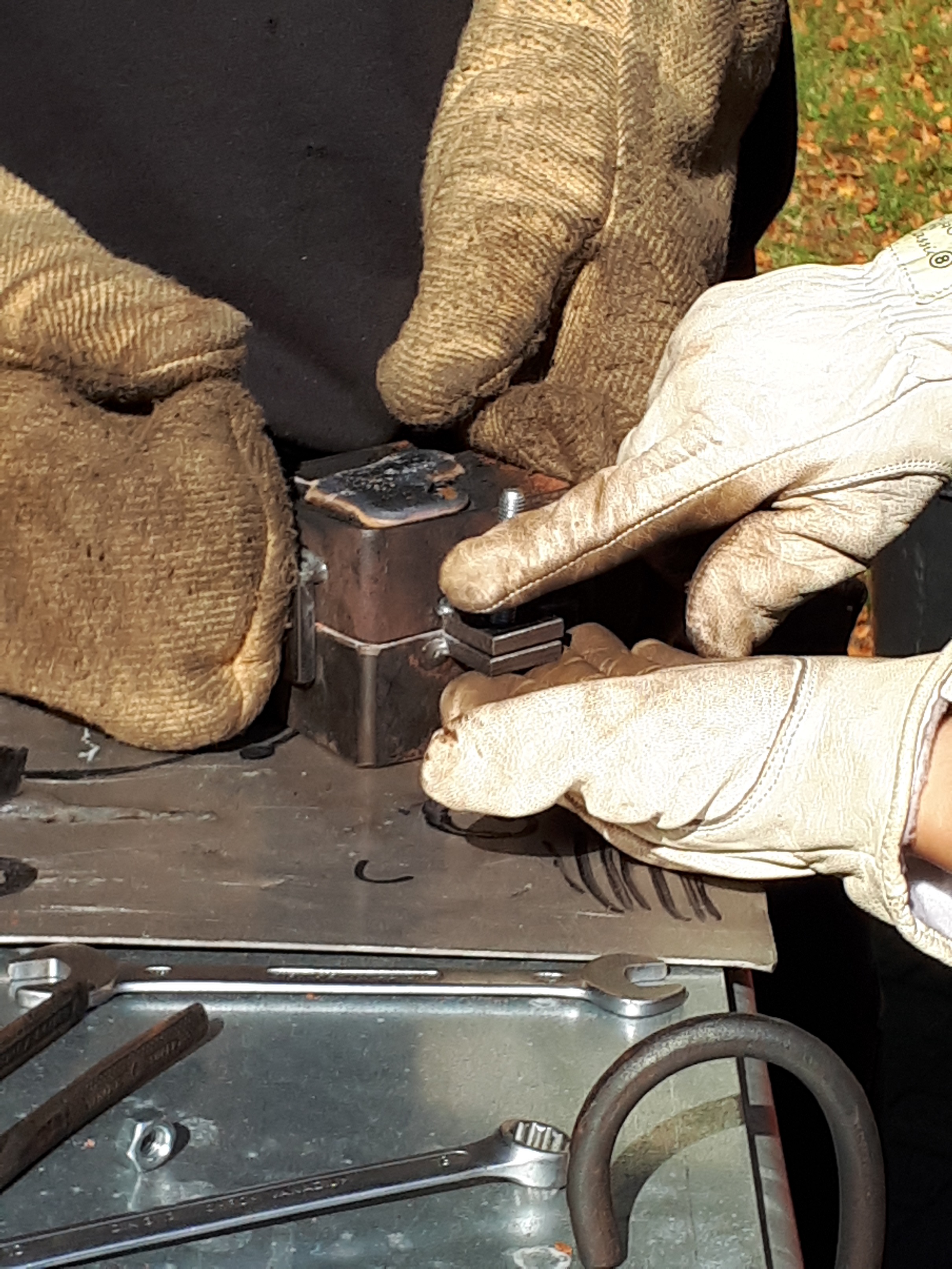 Nun wird die Bronze in einen Extra-Gefäß solange erhitzt, bis sie flüssig wird. Dies passiert unter den fachkundigen Augen vom Lehrer Herrn Petzel, der auch entscheidet, wann der richtige Moment gekommen ist. Mit viel Qualm und Hitze werden die einzelnen Formen aufgefüllt. Jetzt heißt es Ruhe und Geduld zu zeigen, bis die Bronze in der Form wieder abkühlt und hoffen, dass die Formen gut gefertigt wurden.